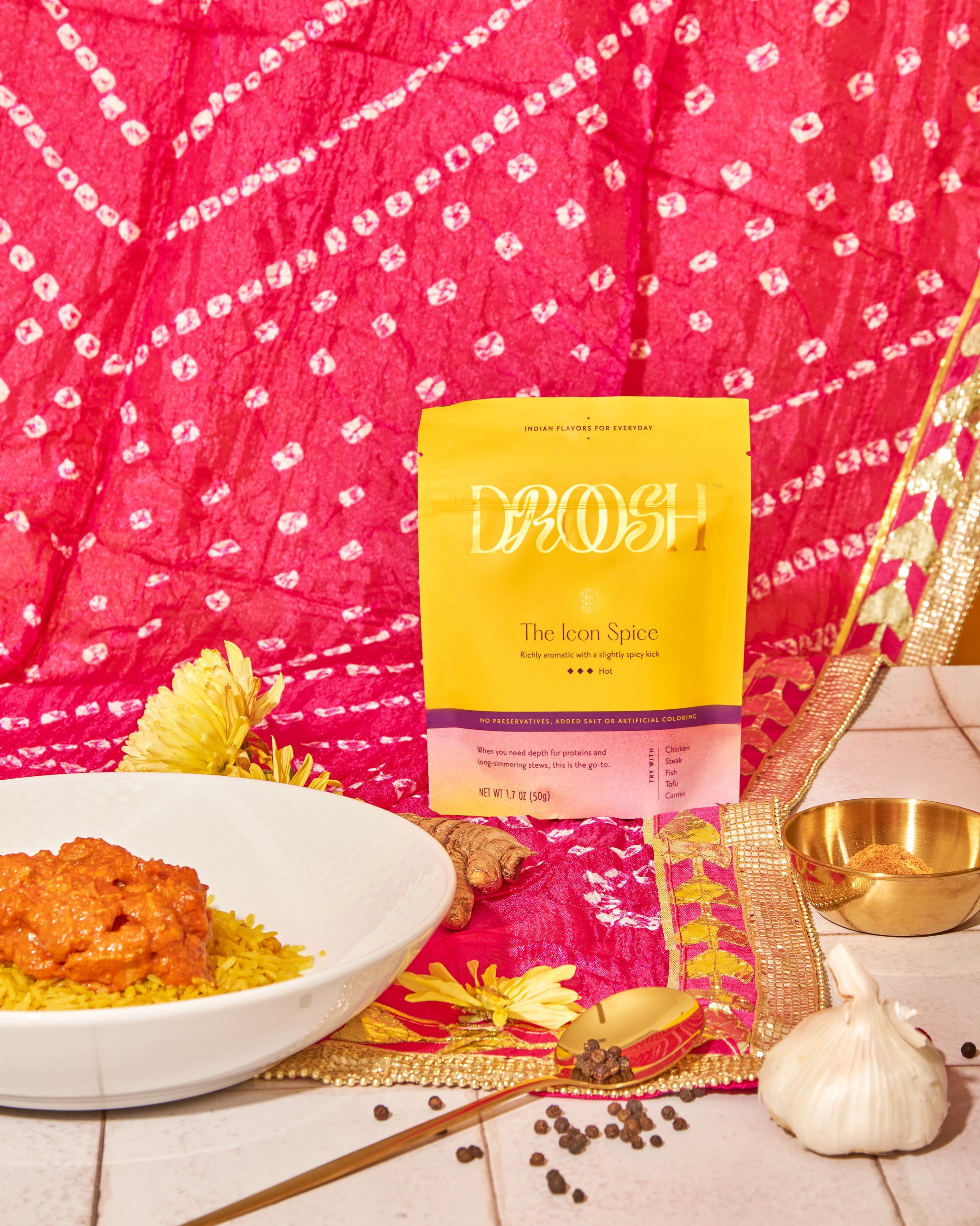 At Droosh, we take bold Indian flavors and craft them for anything you’re cooking. Our spice blends are milled to precision, balanced for harmony, and ready to Droosh up your favorite dishes—whether you’re keeping it traditional by using our blends in your fave Indian dishes or going completely untraditional and using them in non-Indian cuisine.